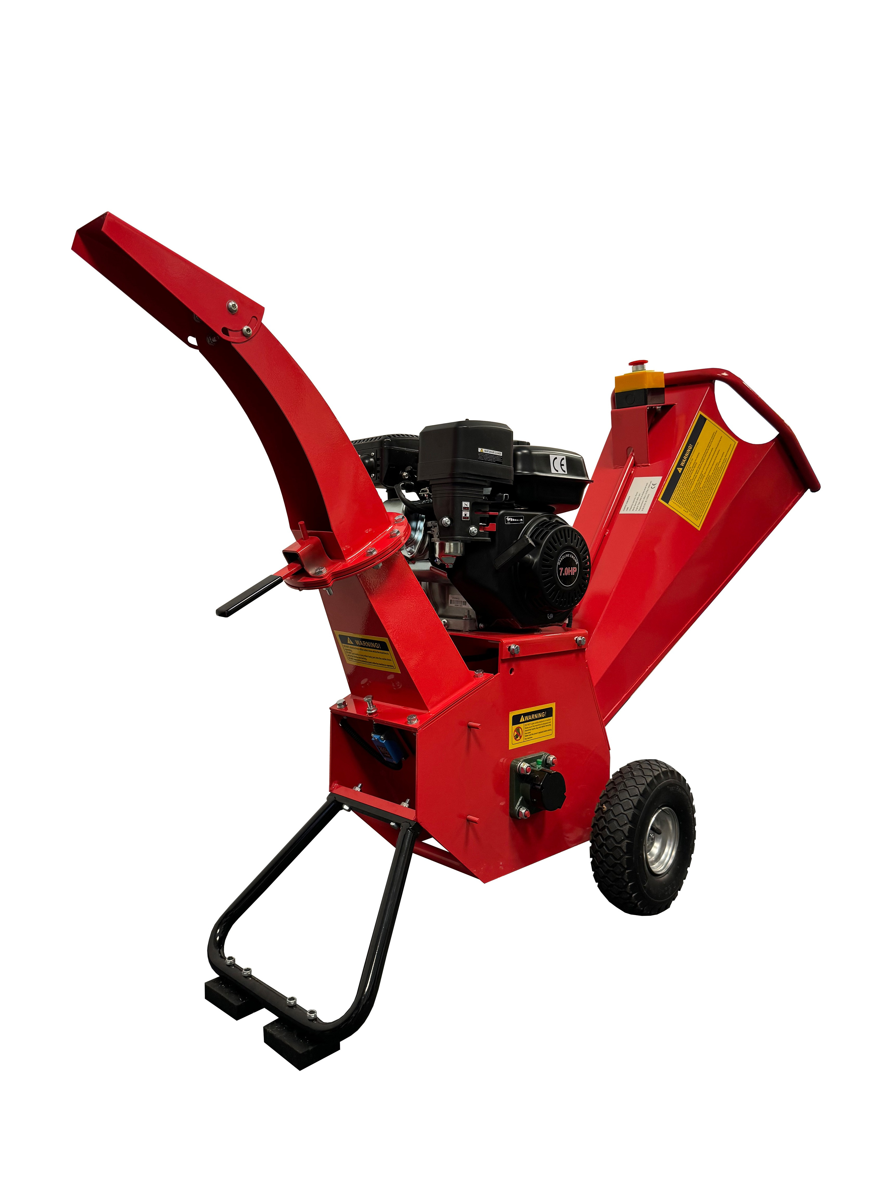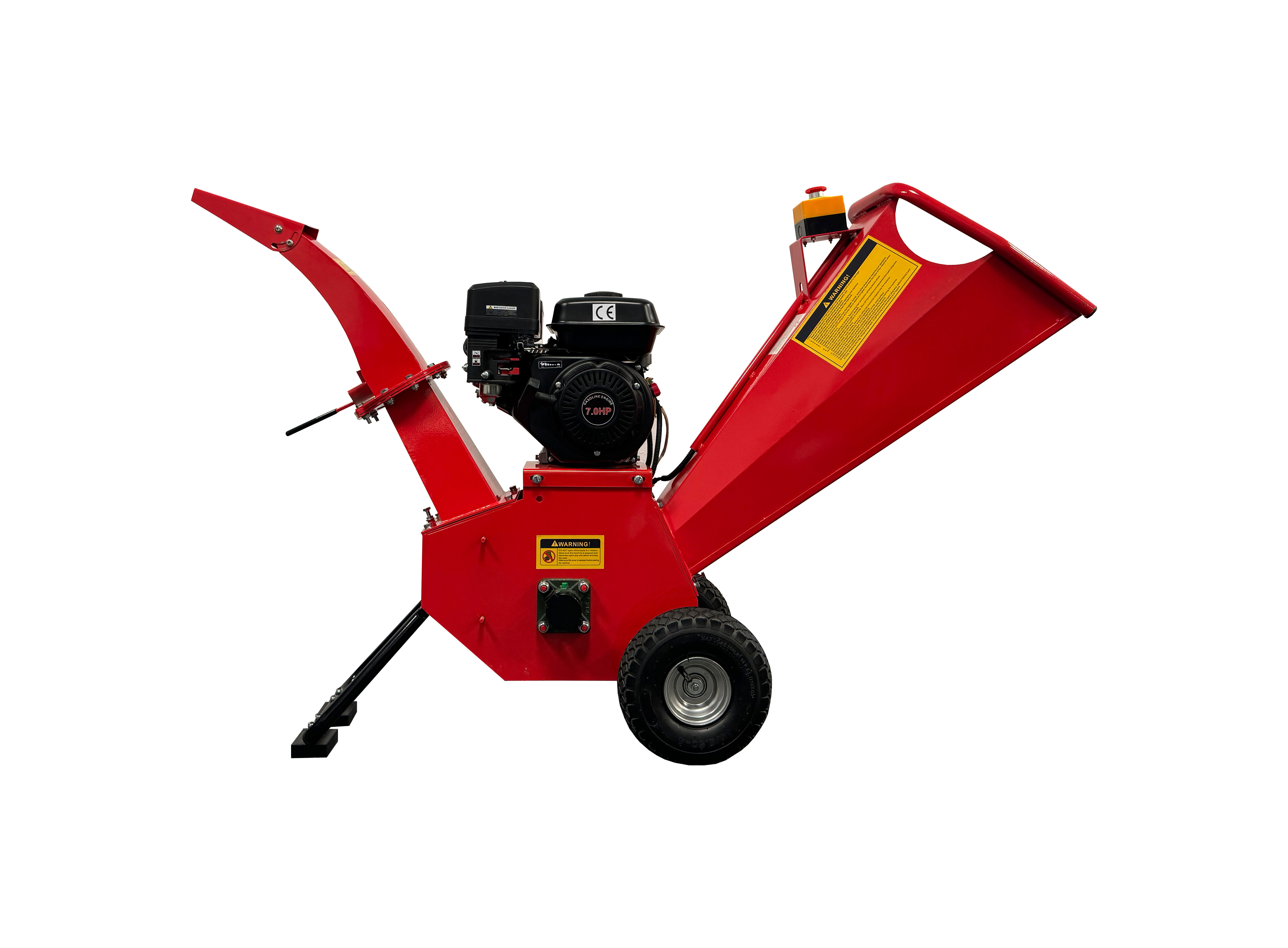 Broyeur / broyeur à tambour CS80, robuste et fiable grâce à sa construction massive. Moteur essence puissant de 6,5 CV, adapté pour broyer arbustes, haies et branches jusqu’à 80 mm de diamètre. Tambour à couteaux tournant à 2800 tours/minute, pneus gonflés à l’air pour faciliter les déplacements.