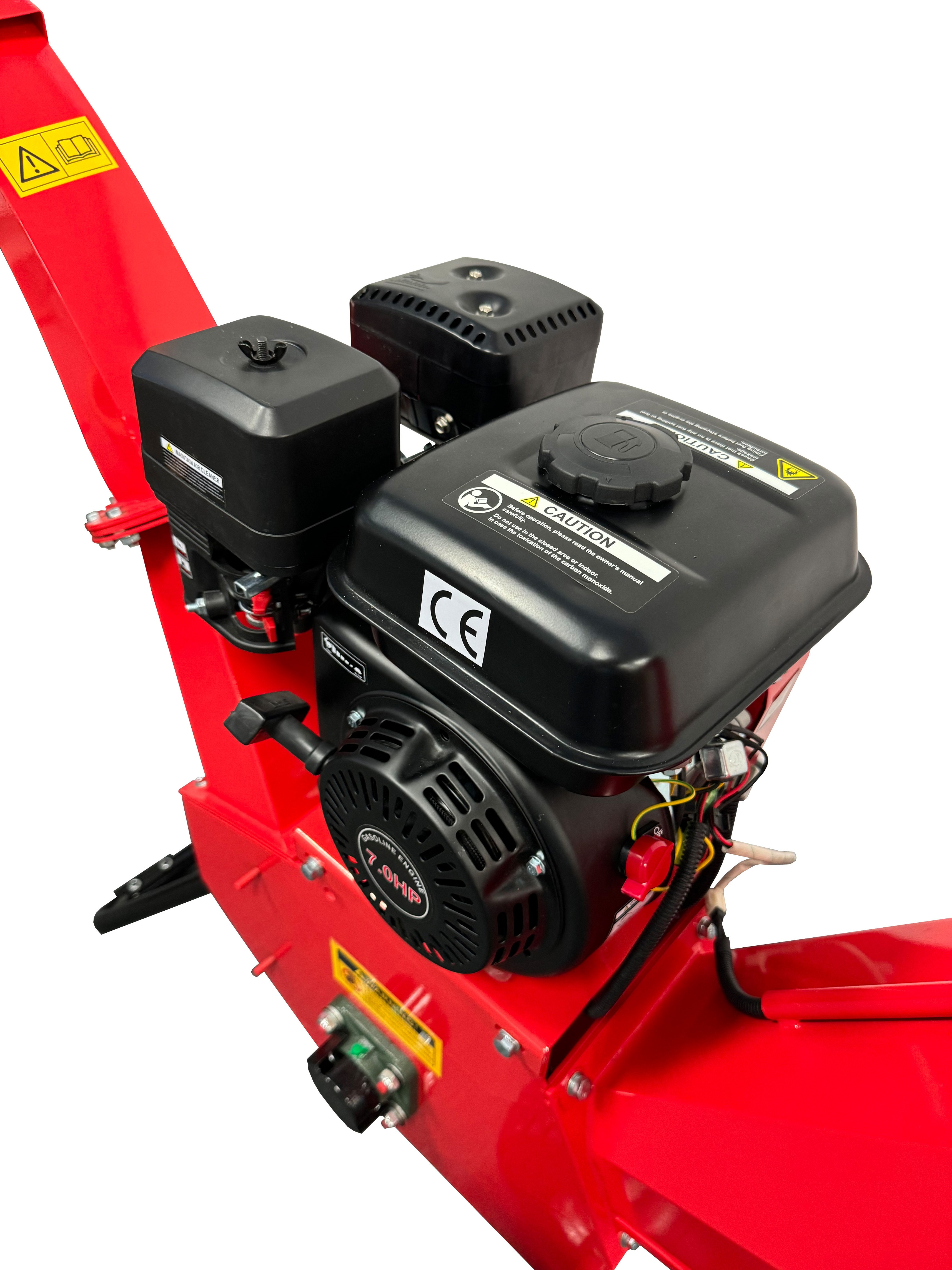 Le bois à broyer est facilement introduit dans le grand entonnoir d’aspiration automatique. Ensuite, les deux couteaux spécialisés, fixés sur un tambour tournant à 2800 tours par minute, déchiquettent rapidement les déchets. Le CS80 est équipé d’un moteur essence de 6,5 CV de dernière génération, doté d’une sécurité contre le manque d’huile et d’un allumage transistorisé électronique (TCI).