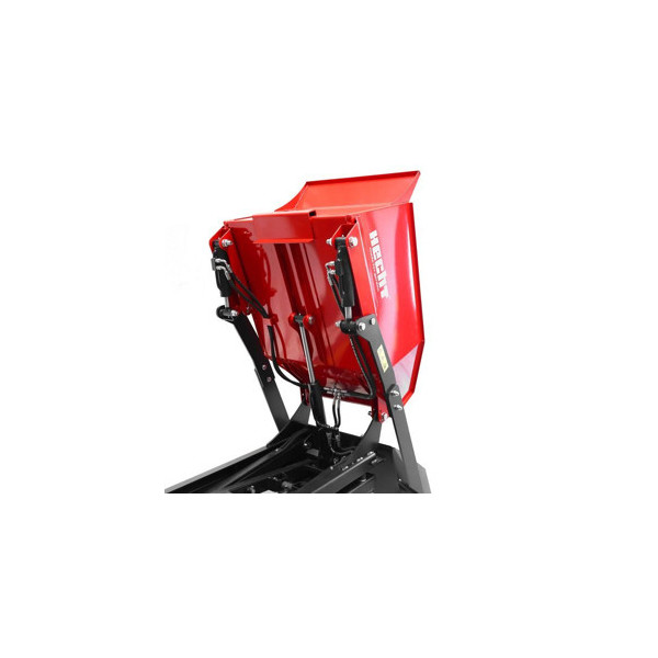 La benne, d’un volume généreux, est basculante par vérin hydraulique pour un vidage rapide et propre dans un tas, une remorque ou une benne. La transmission hydrostatique offre une variation de vitesse souple et précise, ce qui assure un contrôle optimal lors des manœuvres en charge.