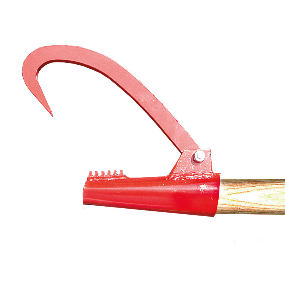 Crochet d’abattage sécurisé avec cran latéral, manche en frêne, crochet en acier C45, idéal pour manipuler et retourner les grumes en toute sécurité.