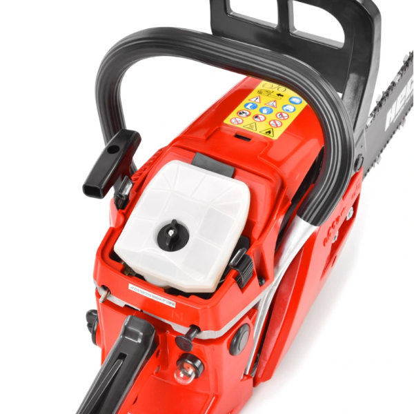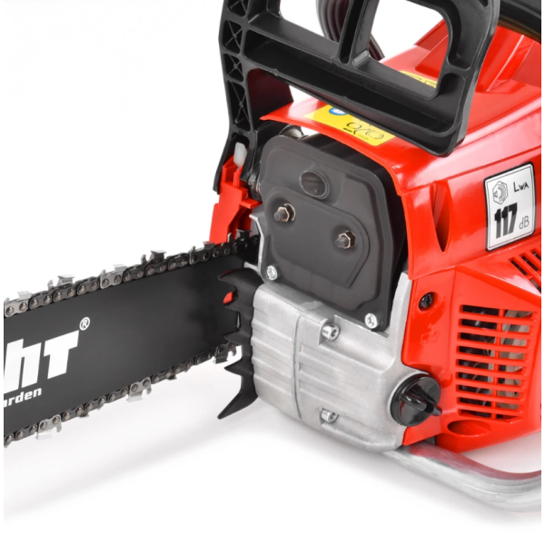 Des matériaux modernes, de l'acier de haute qualité, des alliages d'aluminium légers et des plastiques durables ont été utilisés pour la construction ergonomique de la scie. Leur bonne combinaison a permis d'obtenir une excellente durabilité, un équilibre optimal et un faible poids de scie de 4,9 kg (sans guide ni chaîne). Des poignées bien formées permettent une tenue sûre et sécurisée de la scie dans toutes les positions de travail. La scie est équipée d'un système anti-vibration, qui supprime au maximum la transmission de vibrations désagréables aux poignées causées par un moteur puissant. Par conséquent, les mains ne sont pas soumises à des vibrations excessives et le travail est beaucoup plus confortable.