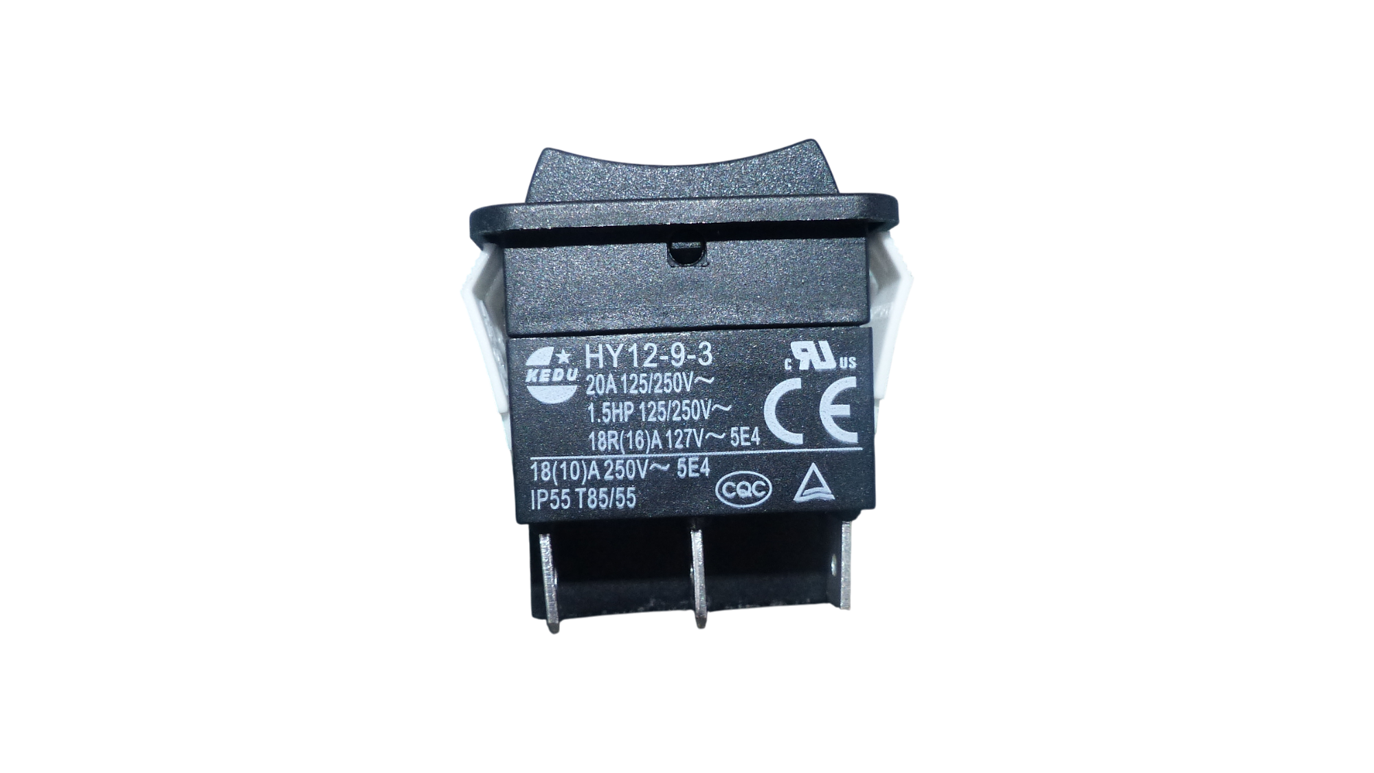 Interrupteur à bascule professionnel HY12-9-3 Crossfer haute résistance pour applications électriques industrielles et domestiques. Cadre extérieur compact 25x32 mm s'intègre parfaitement en tableaux électriques, machines ou équipements. Supporte 20A sous 220V avec 6 broches pour connexions multiples et sécurisées. Idéal circuits commande, éclairage industriel, machines agricoles, outillage électroportatif. Robuste, montage rapide par clipsage, contacts fiables longue durée.