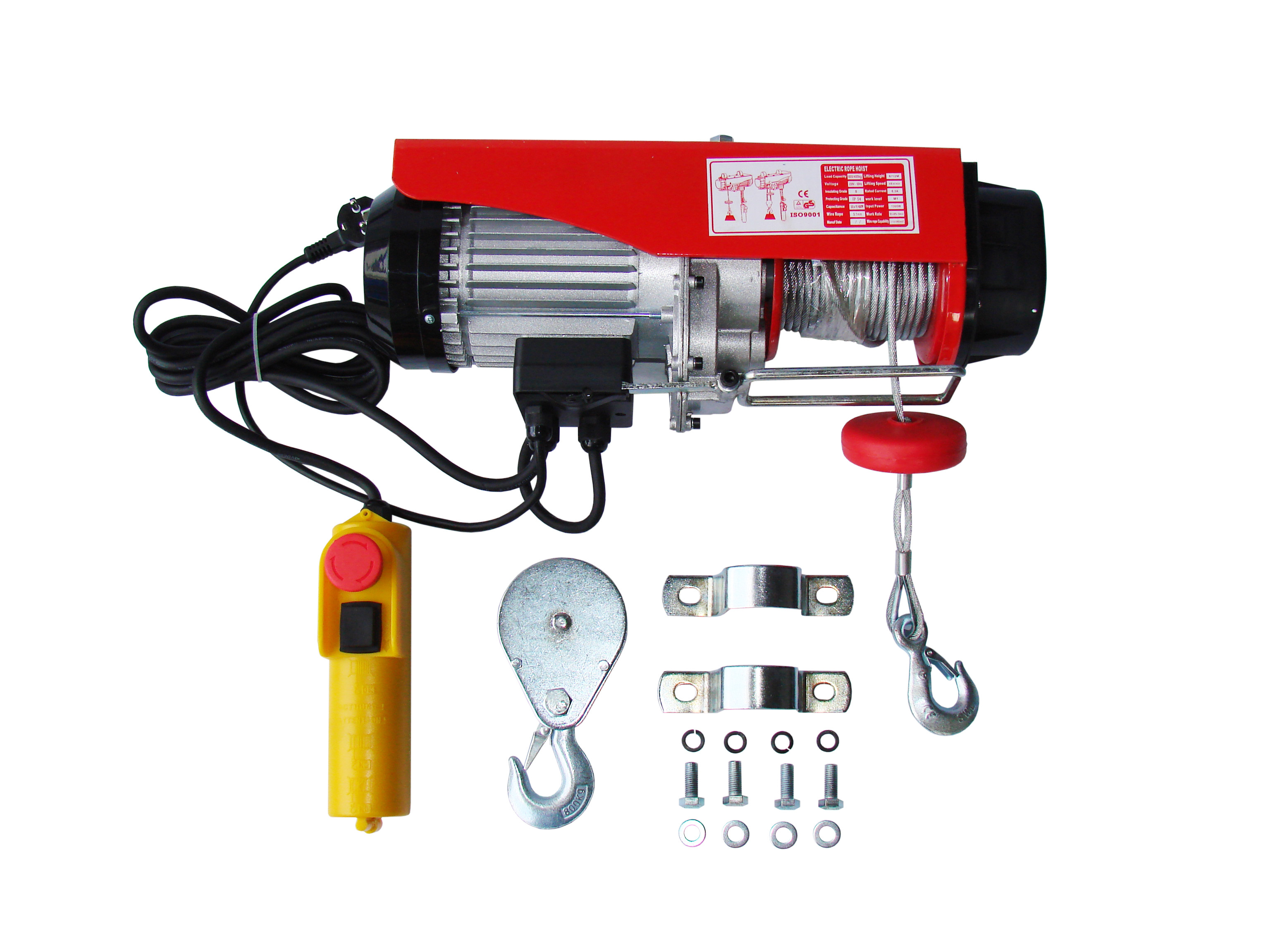 Palan électrique PA300A compact et robuste avec moteur 600 W et câble acier 18 m. Capacité de levage : 150 kg (18 m) ou 300 kg (9 m) avec poulie de renvoi. Équipé d’un frein mécanique de sécurité, arrêts automatiques haut/bas et montage facile. Poids léger de 11 kg, idéal pour atelier, garage, entrepôt ou agriculture.